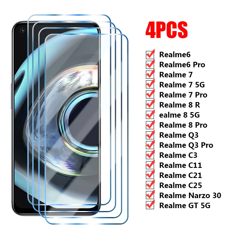 4 шт. закаленное стекло для Realme C21 C11 C3 C25 Narzo 30 Pro 5G 3...