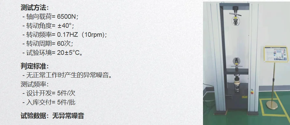 Abnormal noise testaxial 6500N The radial1300N ±40 ° frequency 0.17HZ 60Back to the