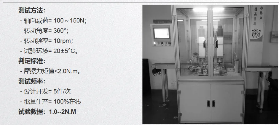 Rotating flexibility testFriction torqueis less than1.5 N.m