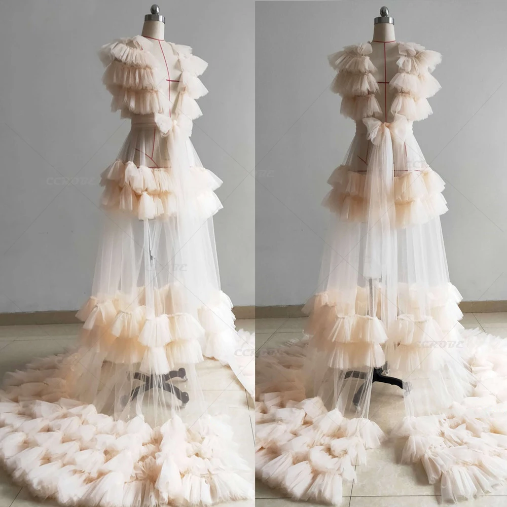 Женское Тюлевое Прозрачное платье с оборками для невесты, одежда для сна, женское кимоно, ночная рубашка, платье для беременных и фотосессии