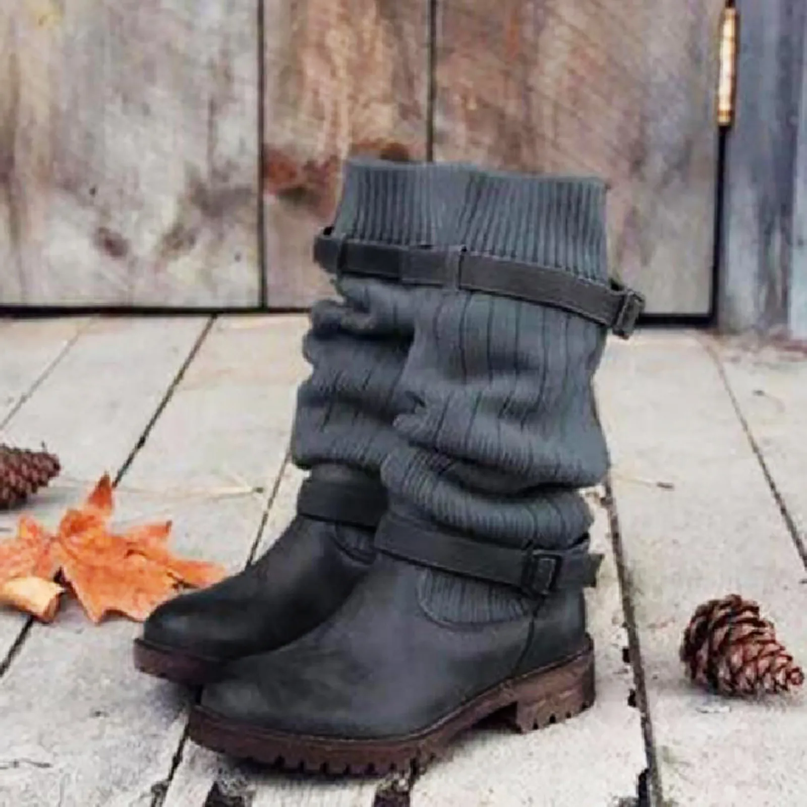 Ботинки женские демисезонные на толстом каблуке, Нескользящие, с шерстяным носком