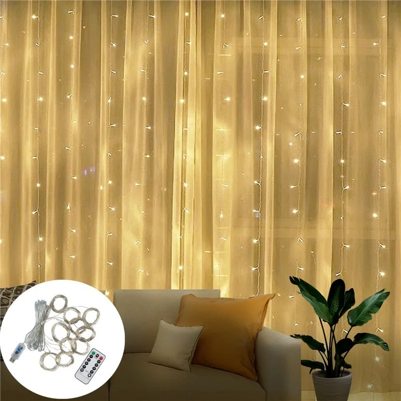 СВЕТОДИОДНАЯ Гирлянда-занавеска на окно, 3 м, USB, с дистанционным ...