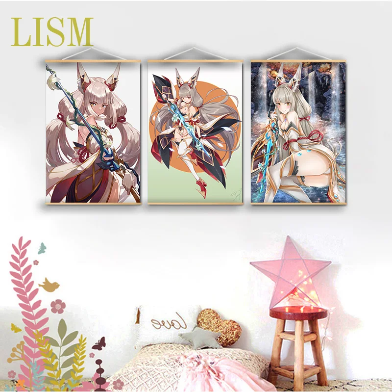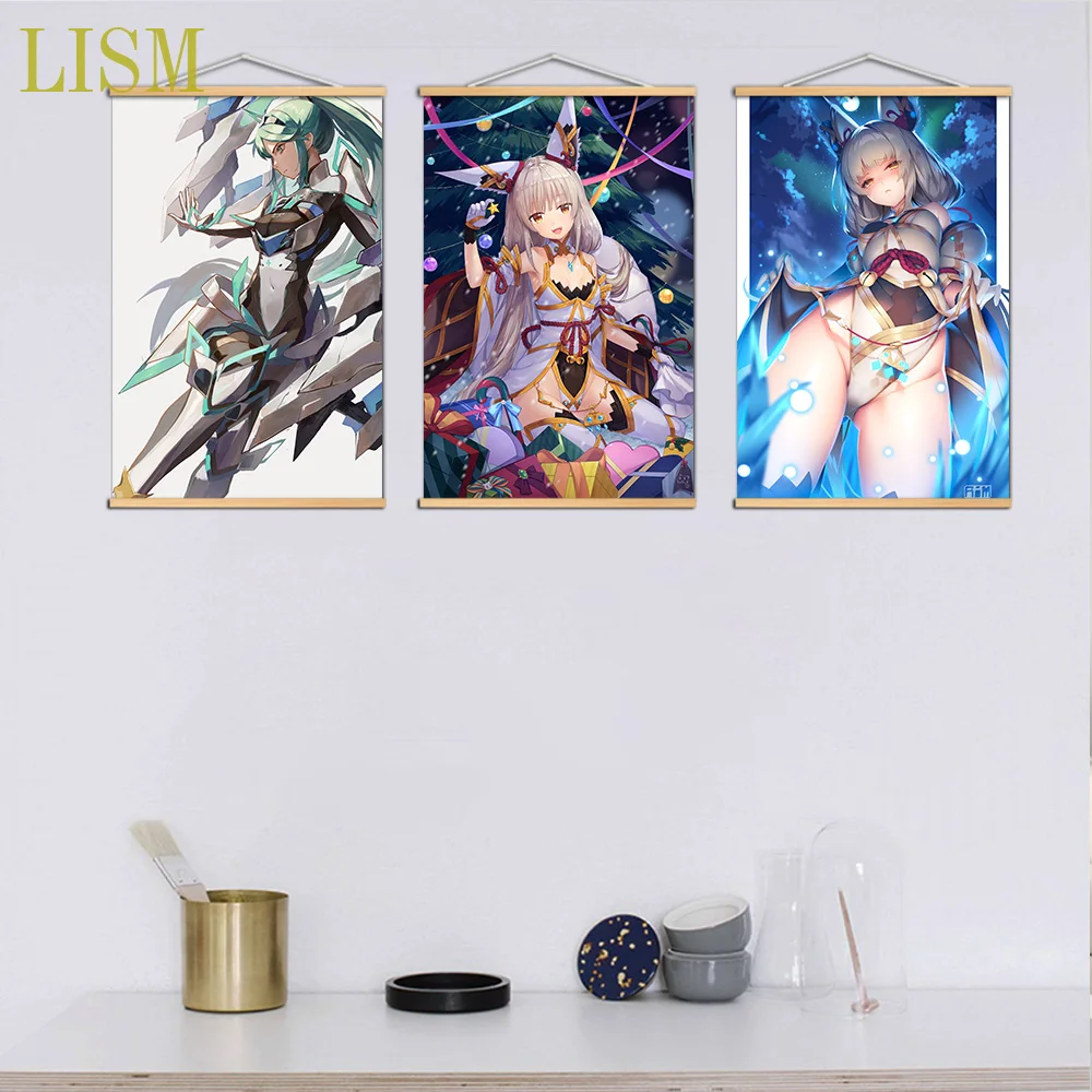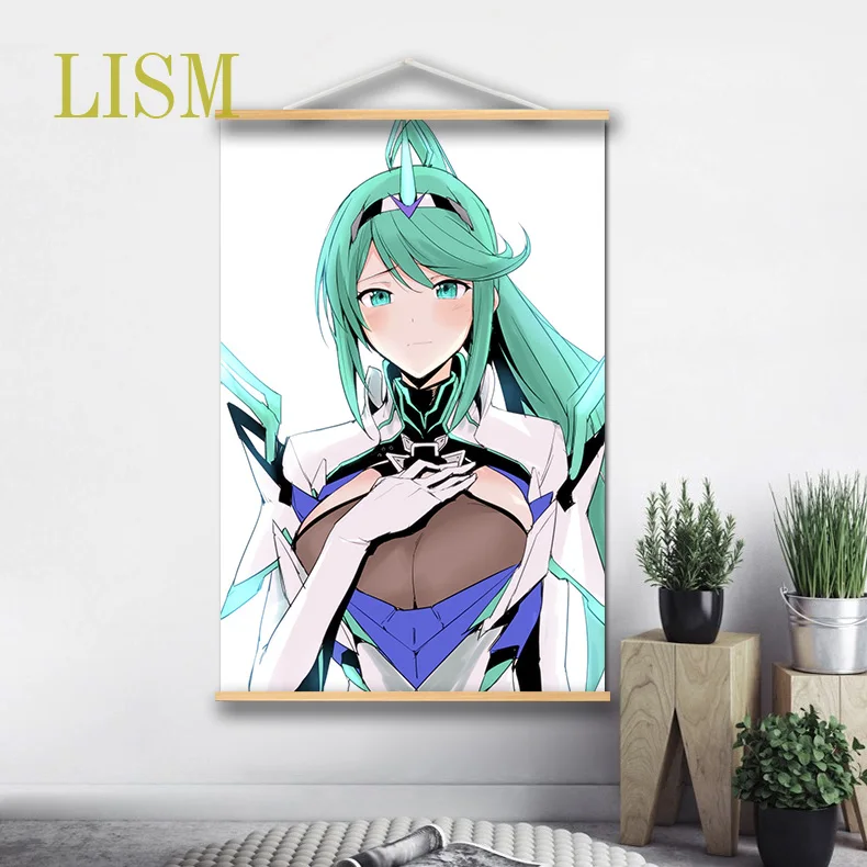 Постер на стену с изображением героев аниме манги, Xenoblade Роскошные хроники 2, Найя пневма, свиток из массива дерева с рисунком на холсте