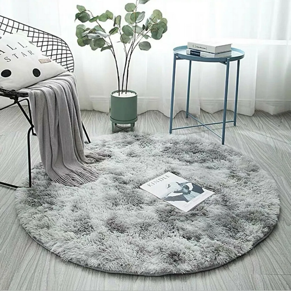 Пушистый круглый ковер 40 х40 см, плюшевый, современный, для гостиной, спальни, нескользящий, плотный, простой, мягкий, детский, ворсистый, коврик для ползания