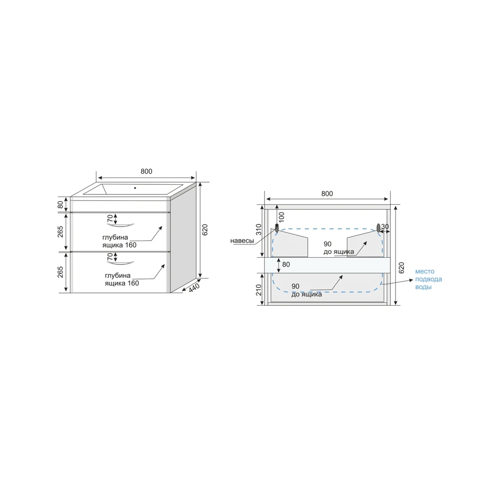 Тумба с раковиной Style line Каре 80, 2000949234274, 2000949234359, Люкс подвесная, белый