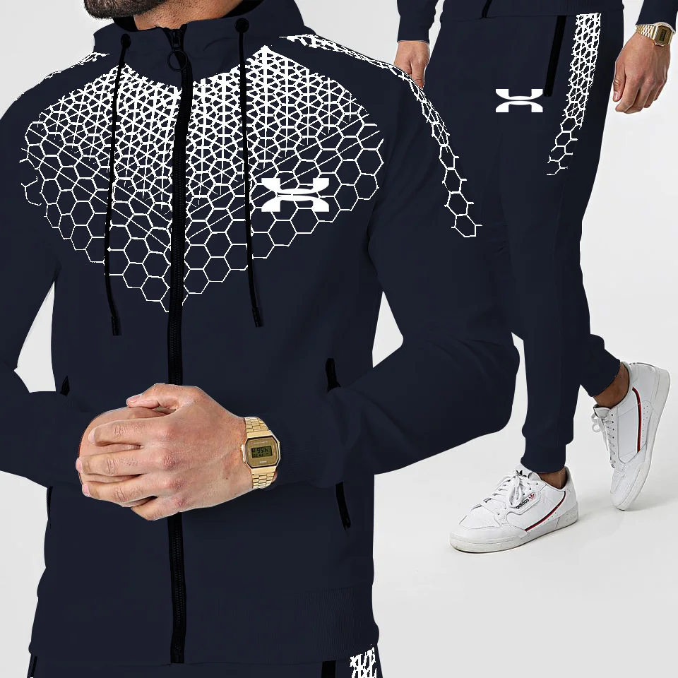 Мужской спортивный костюм на молнии, повседневный комплект из 2 пре...