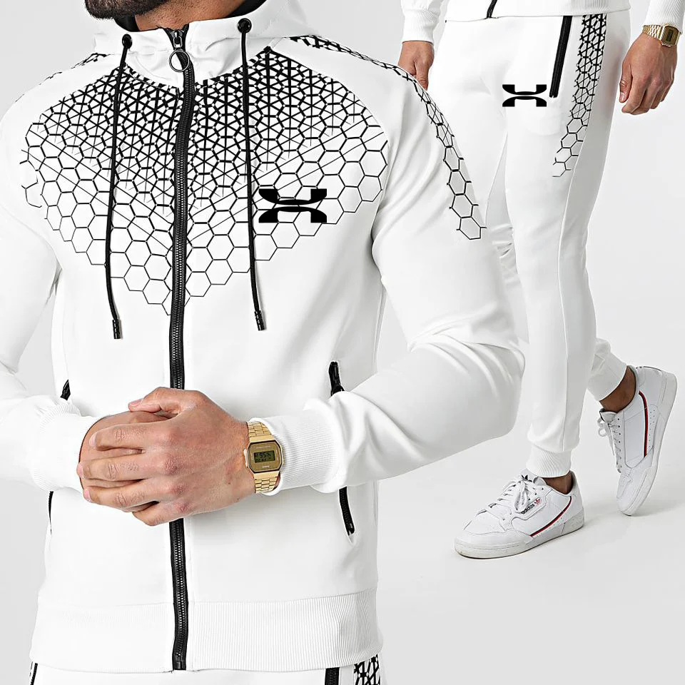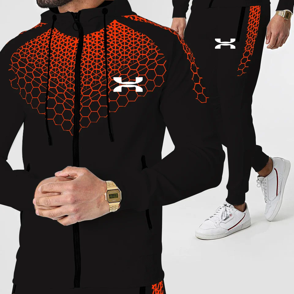 Новинка 2021, брендовый спортивный костюм с принтом для мужчин, комплект из 2 предметов, толстовка с капюшоном и брюки, повседневная спортивная одежда, одежда для спортзала, мужские костюмы для бега