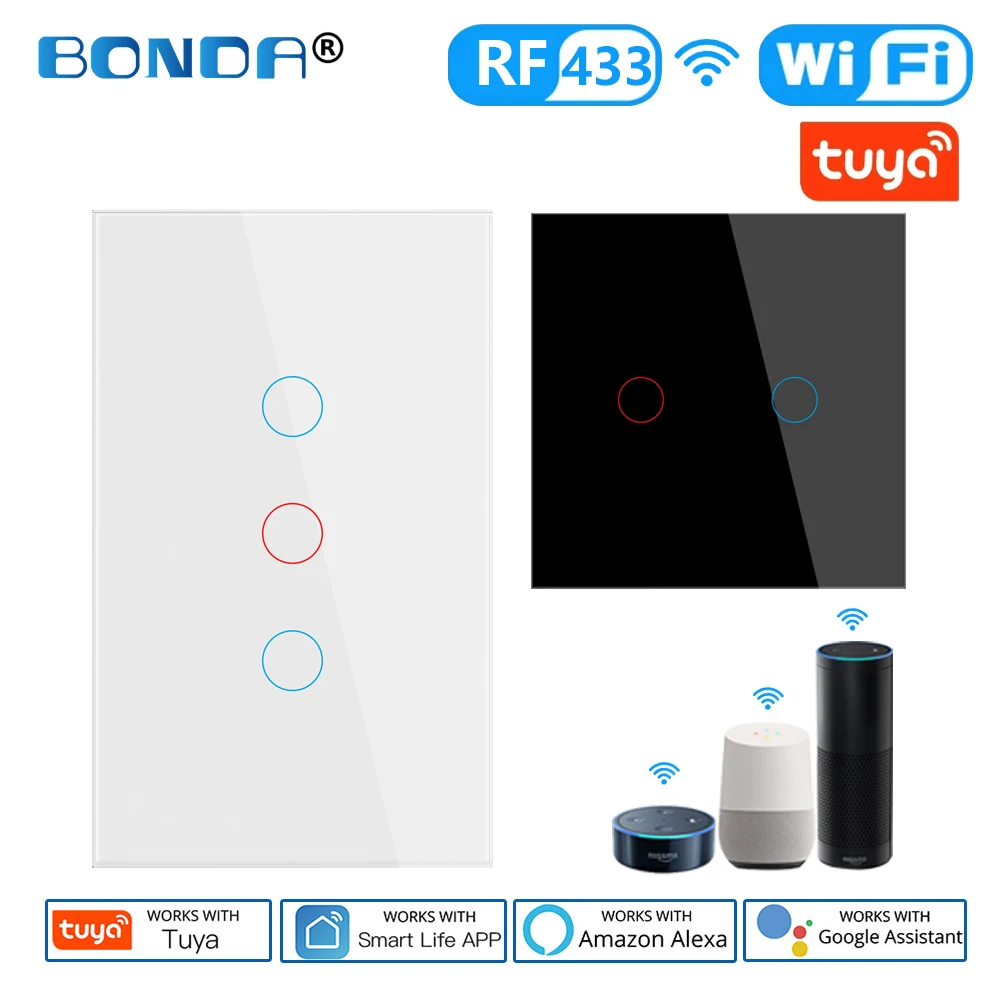 Умный выключатель Alexa без нейтрального стекла, 433 МГц, ЕСВеликобританияСШАБразилия, шикарное стекло, сенсор Google Touch, переключатели Wi-Fi для умного дома