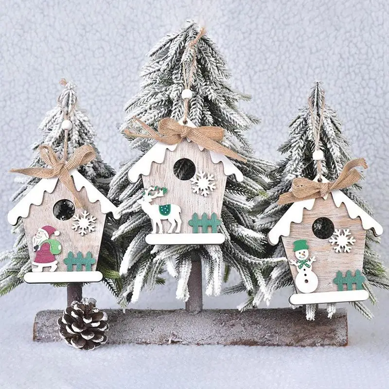 Рождественский дом с печатным оформлением, подвески, украшения, подарки, Санта-Клаус, декор сделай сам, искусственное дерево K1F1