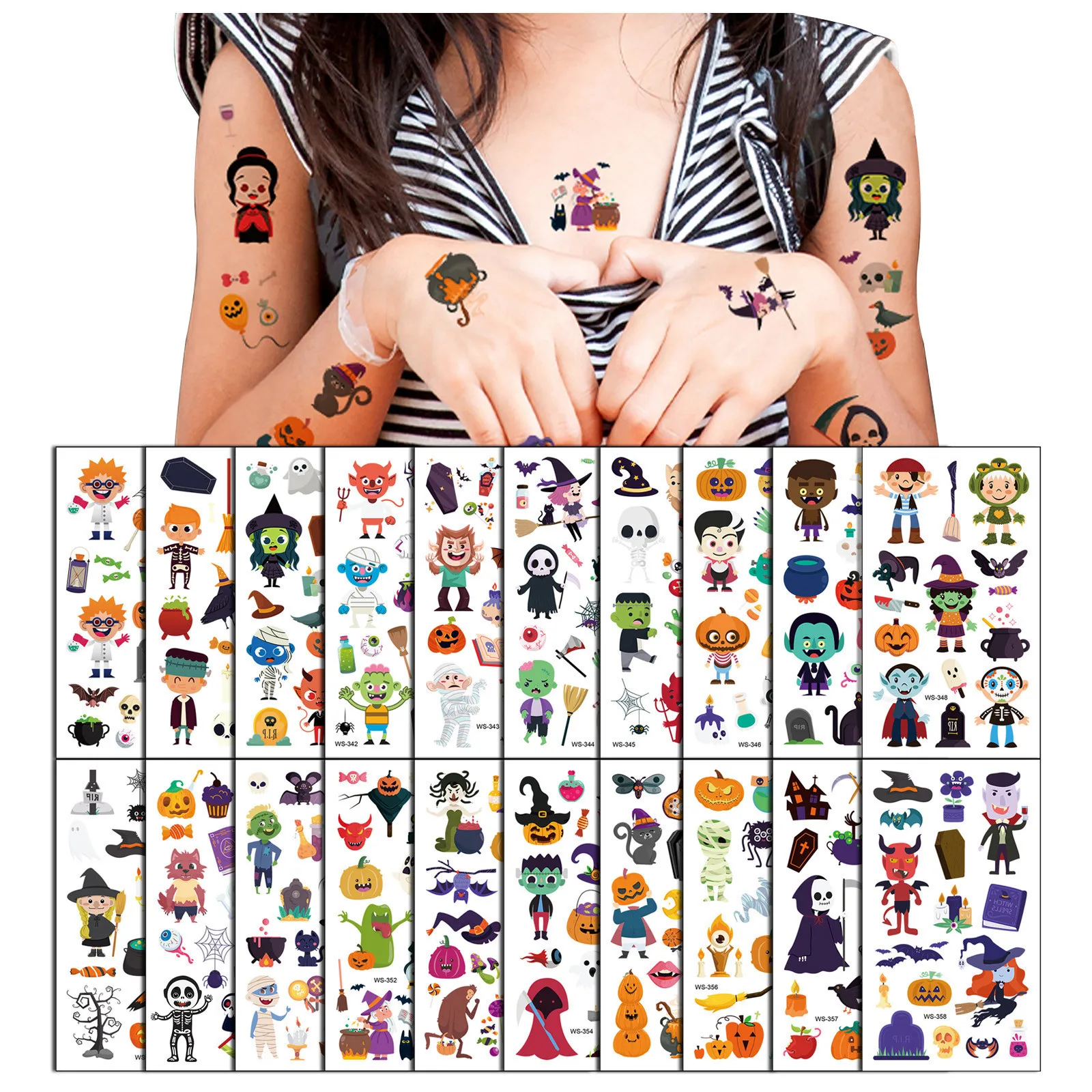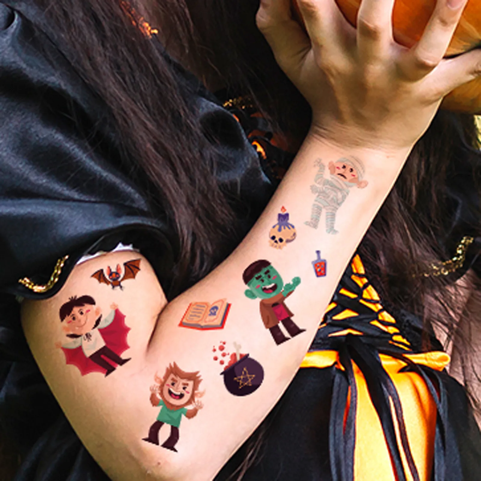 1. Отлично подходит для детских дней рождения, Хэллоуина, Рождества и вечерние сувениры. Различные дизайны для детей на выбор в одной упаковке, чтобы соответствовать всем вашим потребностям, включают в себя кошку, тыкву, монстра, ведьму, Череп, паука и т. д. 2. Эти временные татуировки на Хэллоуин изготовлены из высококачественной безопасной и зеленой бумаги, не аллергенны, полностью безопасны для кожи вашего ребенка. 3. Вырежьте татуировку и удалите прозрачный лист, поместите татуировку на кожу, намочите татуировочную бумагу, нажмите около 20 секунд, затем удалите бумагу, сделано! 4. Эти временные татуировки являются водонепроницаемыми и устойчивыми к поту, долговечными и могут сохранять яркие цвета в течение длительного времени. Но также очень удобно снимать, просто протрите маслом или средством для снятия макияжа.