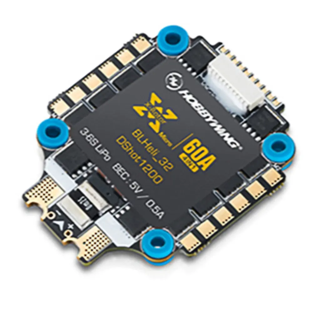 1. В том же размере и размере, что и Контроллер полета, есть 4 высокопроизводительных 60A BLHeli-32 DShot1200 ESCs, 5V BEC.