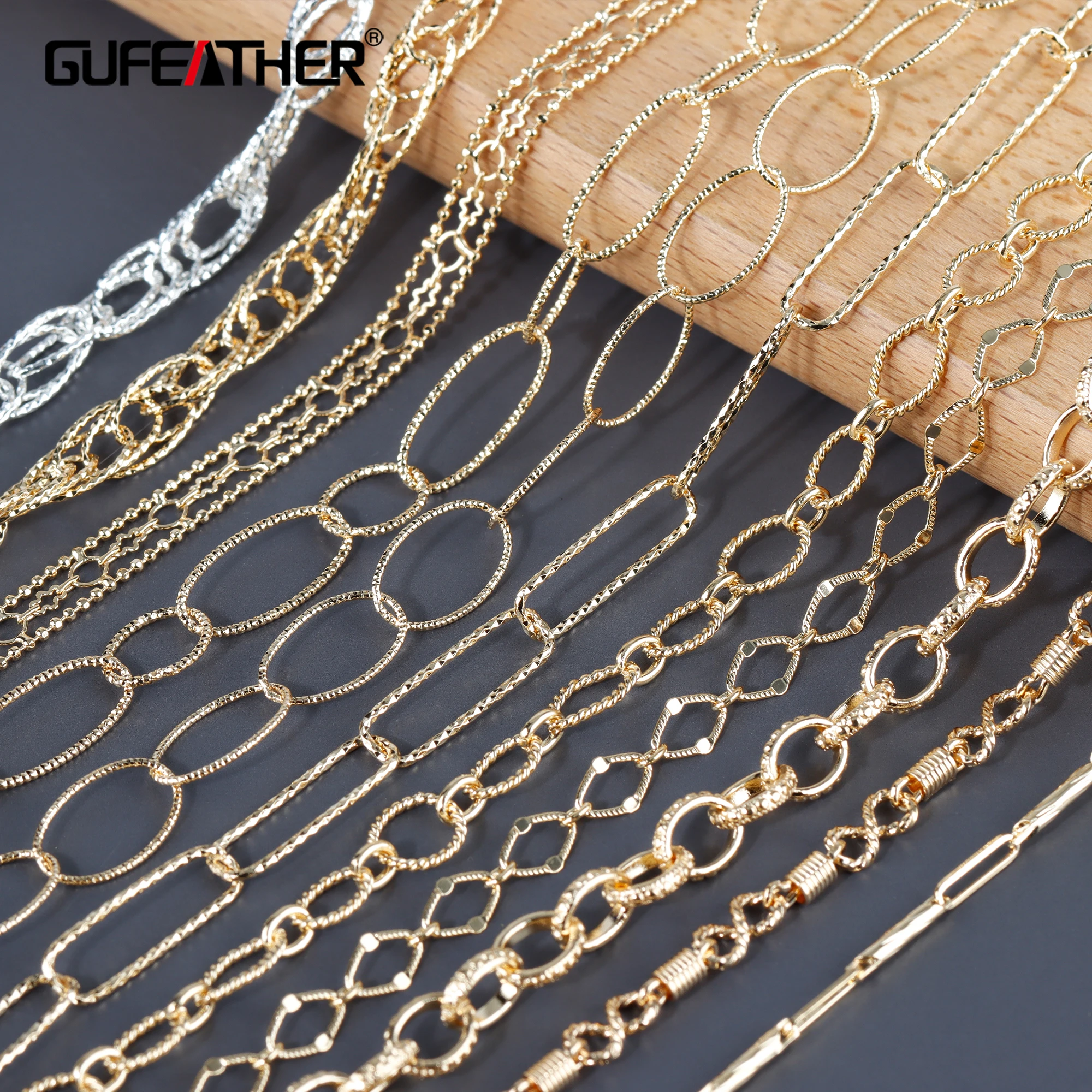 Цепочка GUFEATHER C192 для самостоятельного изготовления ювелирных изделий, покрытая 18-каратным золотом, из меди и металла, не содержит никеля, с кольцами и подвесками, для изготовления браслетов и ожерелий, 1 млот