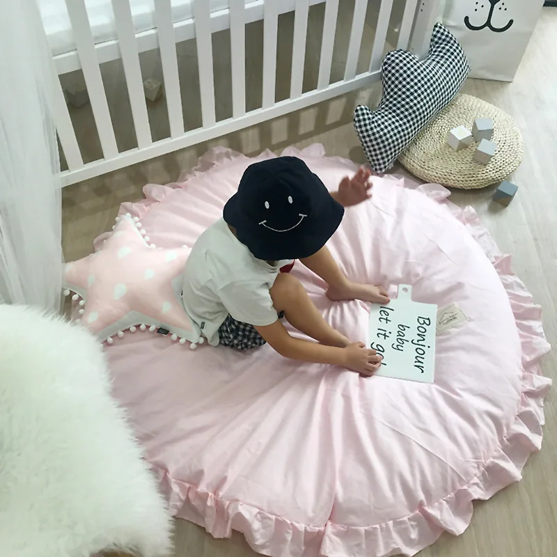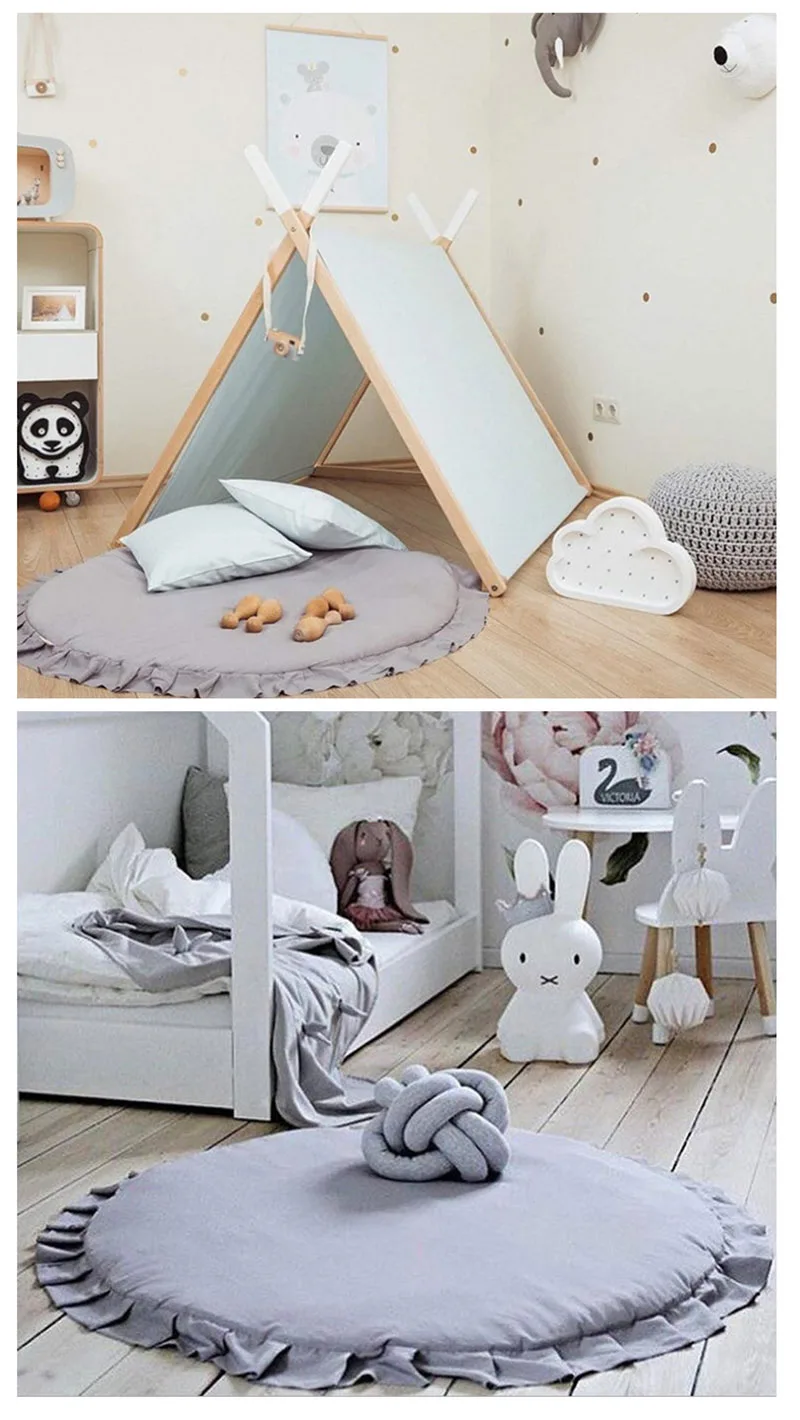 Детские игровые коврики для ползания, Круглый кружевной хлопковый ковер, Детский мягкий коврик для гостиной, детский игровой напольный декор для новорожденных