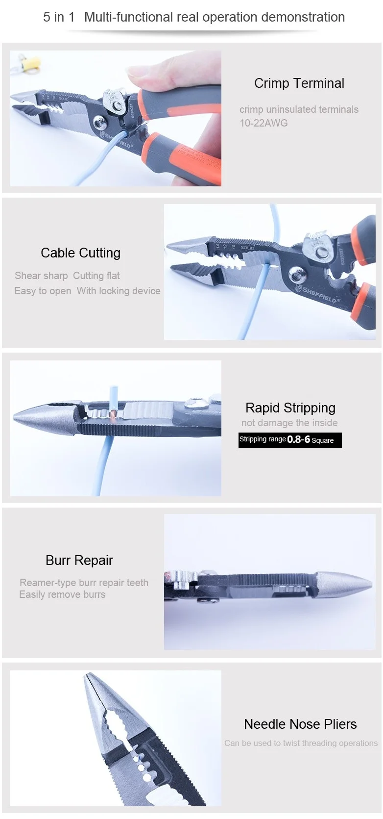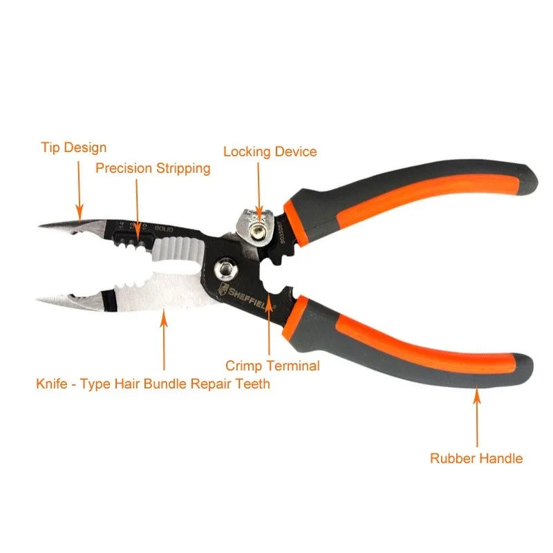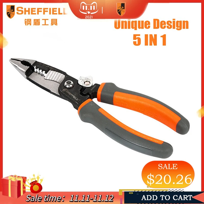 Многофункциональные Электрические плоскогубцы SHEFFIELD, 8 Дюймов, 5 в 1, плоскогубцы для зачистки проводов, обжимные плоскогубцы 5 в 1