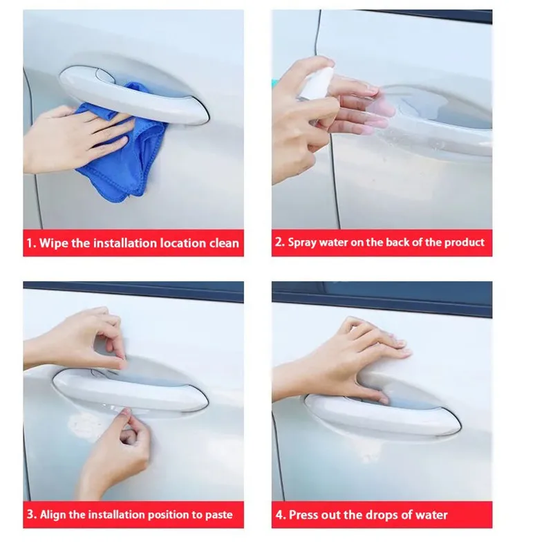 8 шт. Прозрачная защитная наклейка на дверную ручку автомобиля для ...
