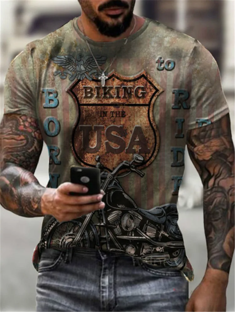 Летняя мужская футболка, уличная мода, мотоциклетная 3D одежда; Муж...