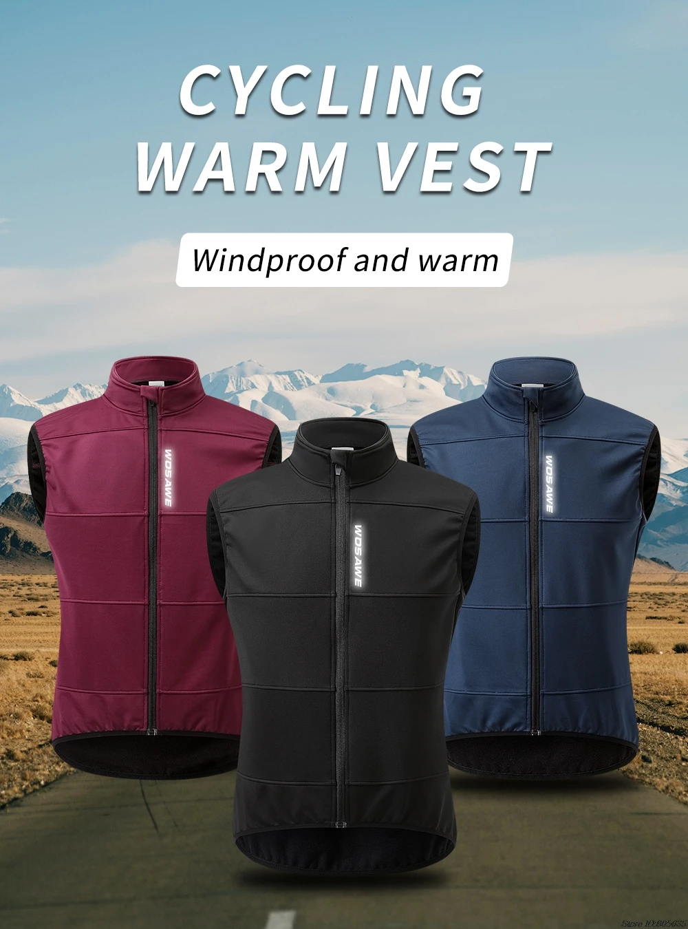 Мужской зимний теплый велосипедный жилет WOSAWE, теплая ветрозащитная Водонепроницаемая жилетка без рукавов для бега, светоотражающая одежда для горного велосипеда