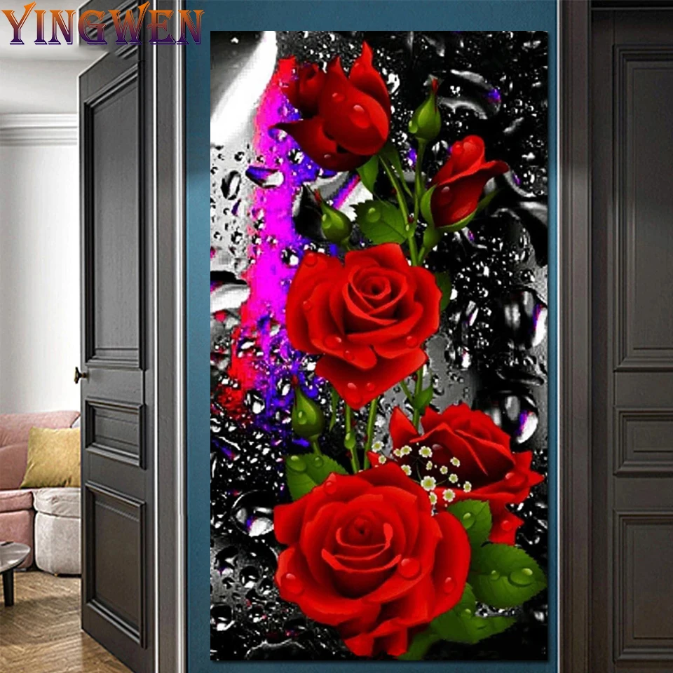 5D DIY алмазная живопись красная роза Вышивка крестом Алмазная художественная мозаика домашний декор красивый цветок большой размер Алмазная вышивка подарок