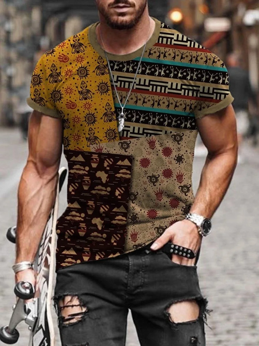 Футболки мужские, большого размера, с этническим принтом, с круглым...