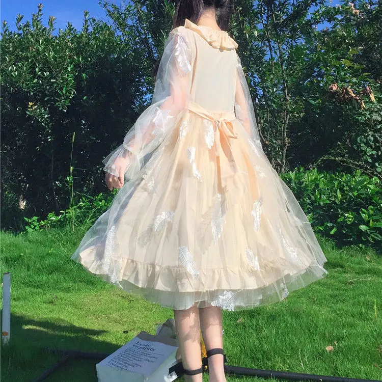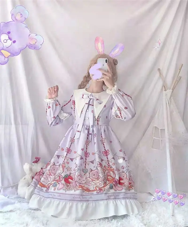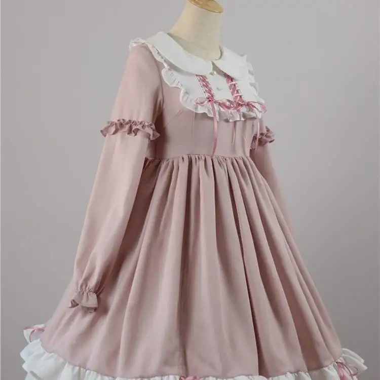 Женское платье в стиле Лолиты, с отделкой Алиса в вондели, с длинным рукавом, в японском стиле Харадзюку, Кукольное платье феи, кружева с оборками