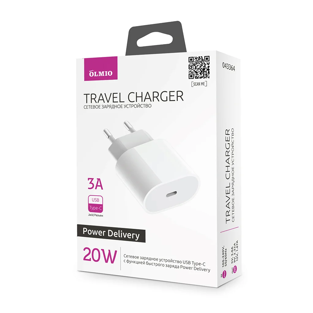 Сетевое зарядное устройство Type-C 20В 3А универсальный зарядный блок для смартфонов Power Delivery 2.0 OLMIO