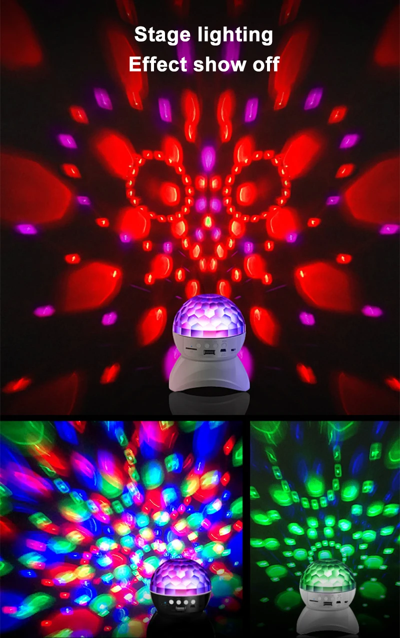 Беспроводной музыкальный динамик, сценическое освещение, светодиодный диско-шар, освещение s, USB зарядка, BT-совместимый проектор, светильник для KTV вечерние вечеринки, свадьбы