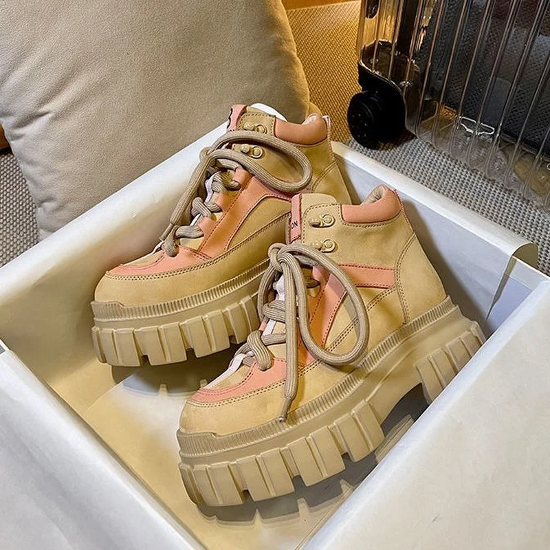 Женские полусапожки HOUZHOU на платформе в готическом стиле, осенняя спортивная обувь на массивной подошве, дизайнерские полусапожки в стиле Харадзюку