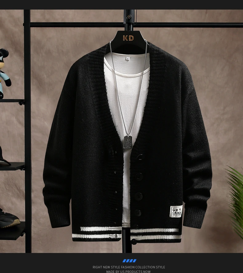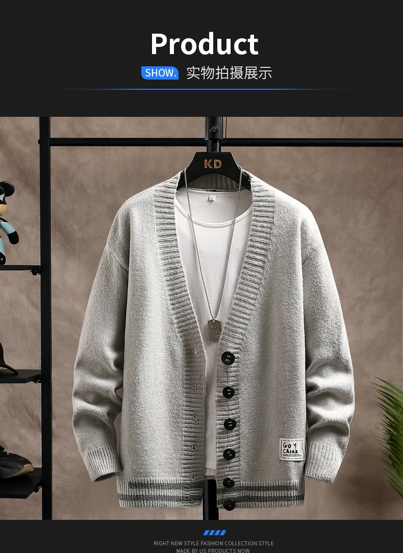 Новинка, осенне-зимняя Модная трикотажная черная повседневная куртка в Корейском стиле, верхняя одежда для мужчин