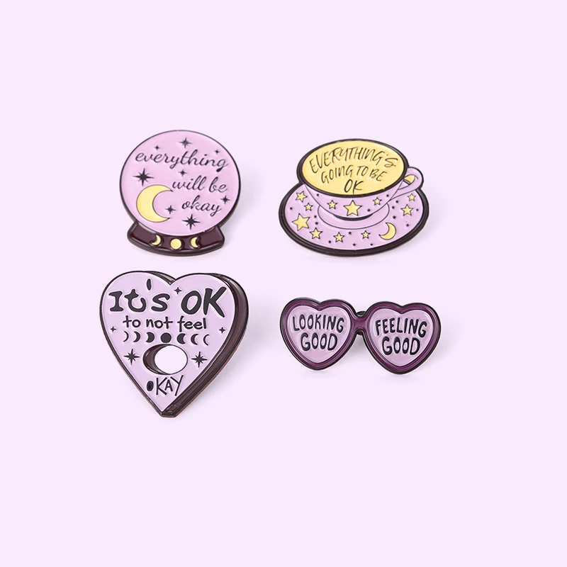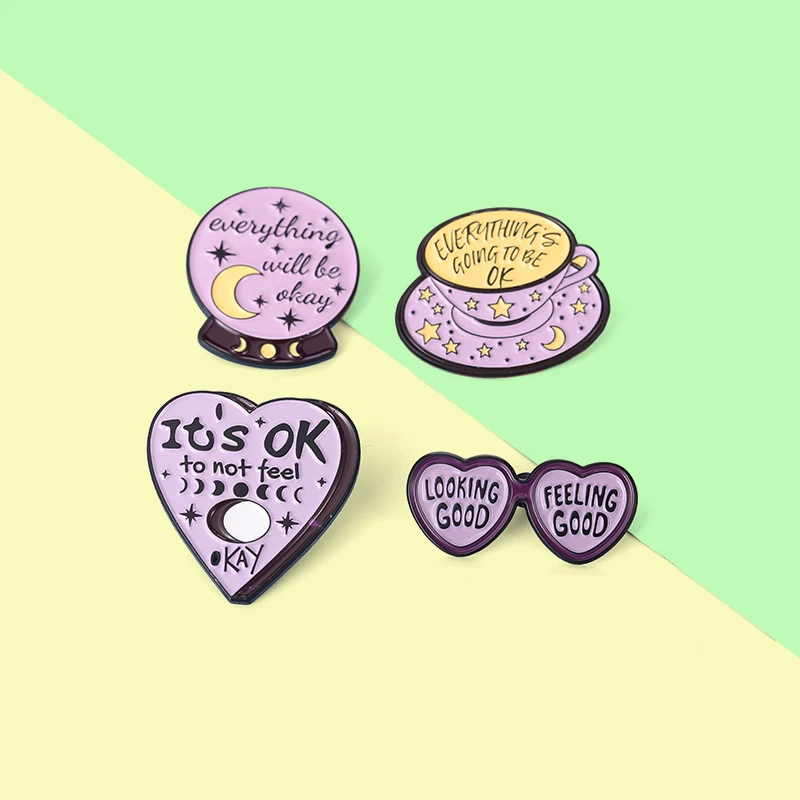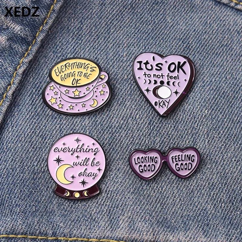 Фиолетовый металлическая брошь с эмалью для женщин, это нормально, любовь, звезда, кофейная чашка, хрустальный шар, хорошо смотрится, Значки для одежды, значки на лацкан, подарок другу