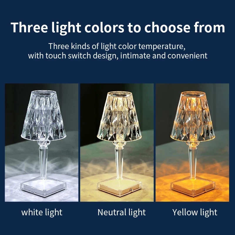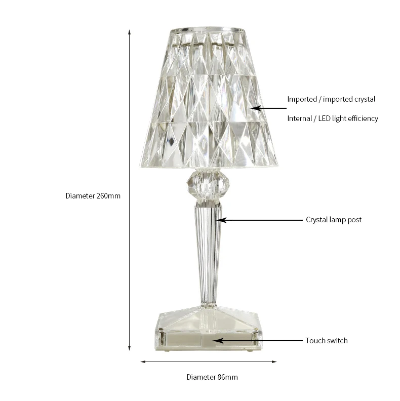 ПерезаряжаемаяUSB-лампа с алмазным сенсорным датчиком, Настольный светильник на батарейках с кристаллами, освещение для бара, акриловая настольная лампа, прикроватный светильник Ник
