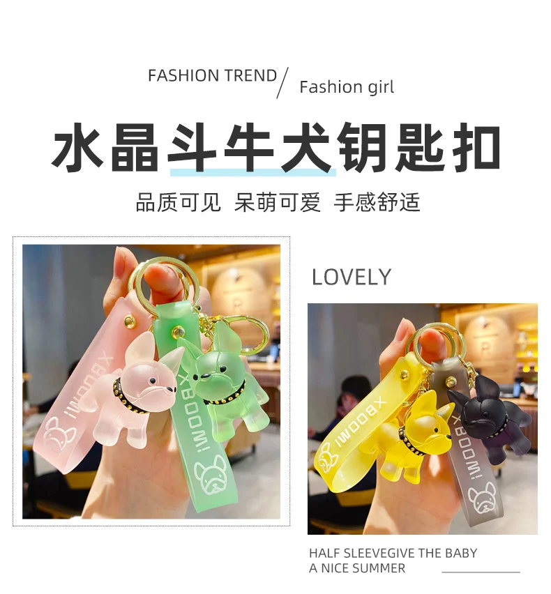 Милый крутой Хрустальный брелок в виде бульдога, брелок для пары, украшение для девушек, Маленькая подвеска, брелок для автомобиля, подвеска для студенческой сумки