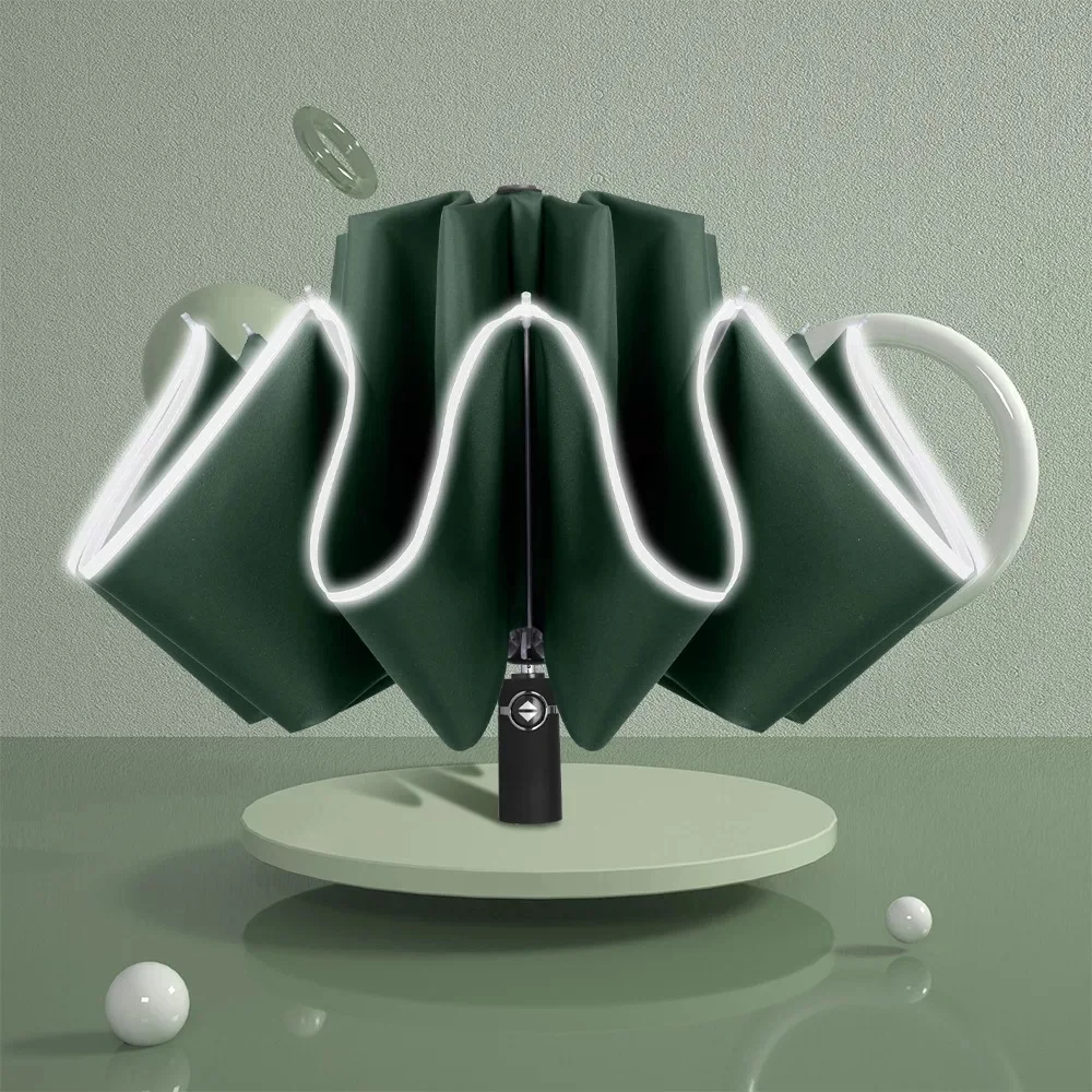 Новый Автоматический ветрозащитный зонт Xiaomi со светодиодной подсветкой и светоотражающей полосой, зонт с тремя складными перевернутыми 10 спицами для автомобиля