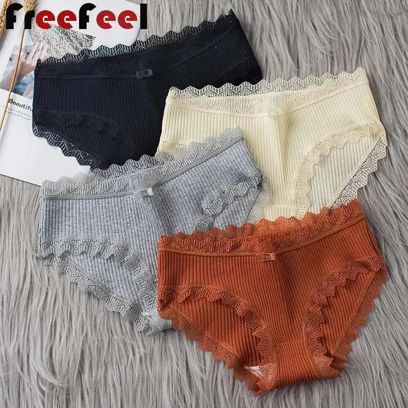Женское нижнее белье средней талии, однотонные ребристые кружевные ...