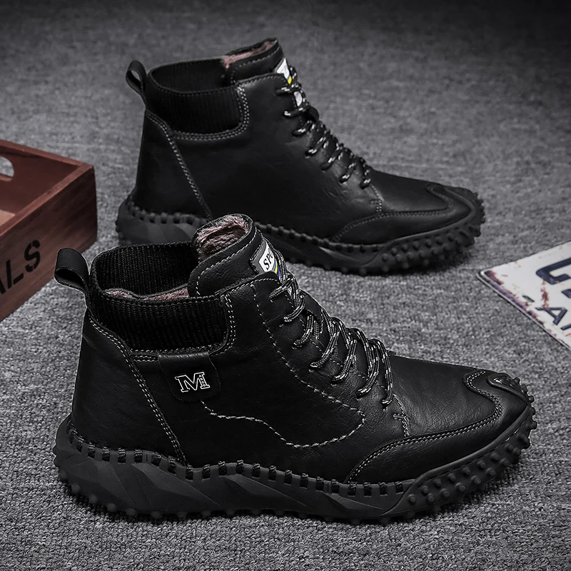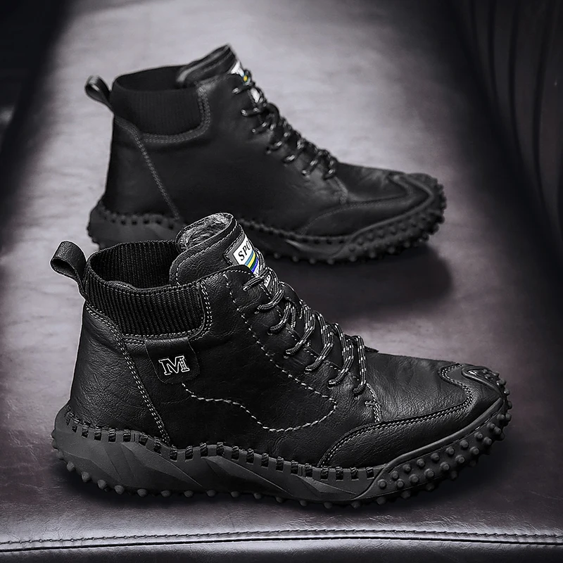 Мужские зимние ботинки, толстый плюш, теплые кожаные ботильоны, мот...