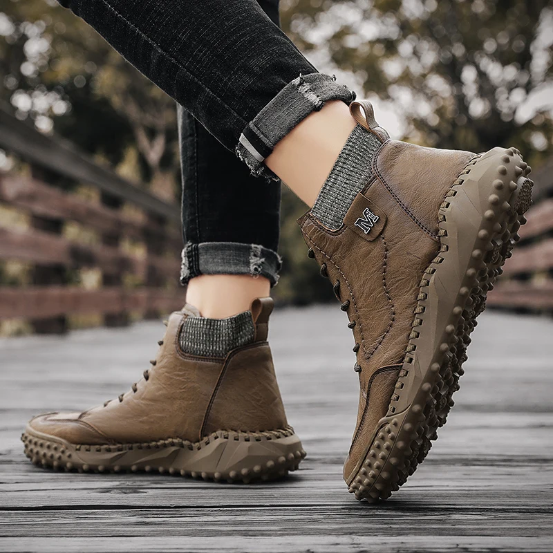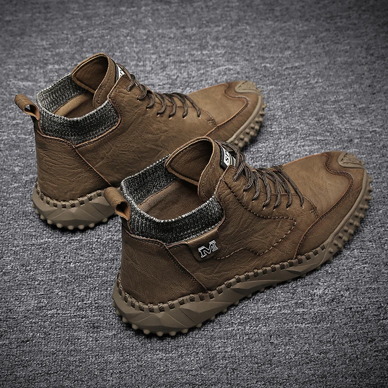 Ботинки мужские кожаные уличные, теплые, Повседневные Удобные, для пешего туризма, зимняя обувь
