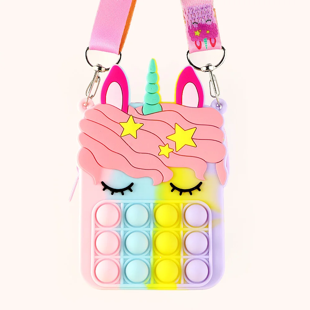 Детская игрушка-антистресс с пузырьками, Радужный Единорог, кошелек для монет, женская сумка, силиконовая сумка через плечо для девочек и мальчиков, бесплатная доставка