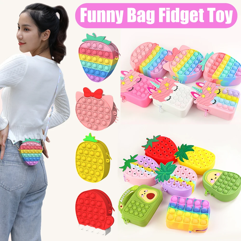 Игрушка-Непоседа, детская игрушка с пушающими пузырьками, Радужный Единорог, кошелек для монет, женская сумка, сумка через плечо из кремнезема для девочек и мальчиков, бесплатная доставка