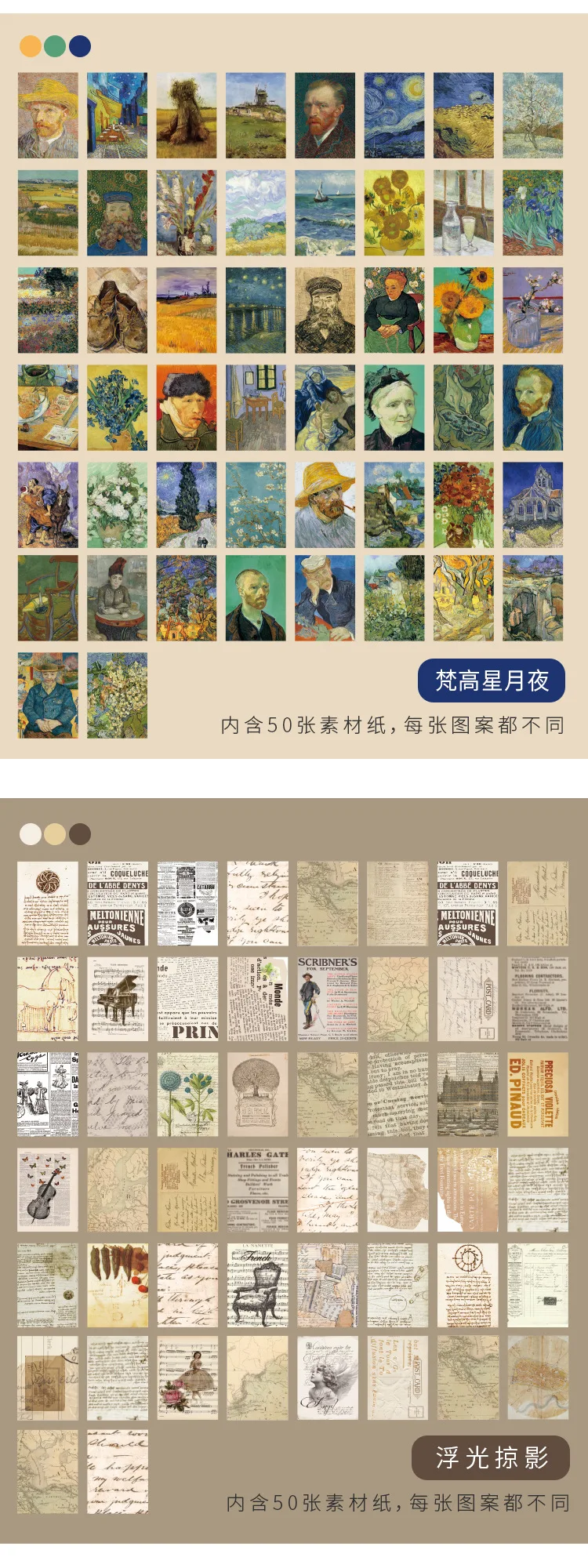 50 листов Ретро Ван Гог монет муча живопись декорации Декоративные ...