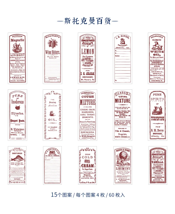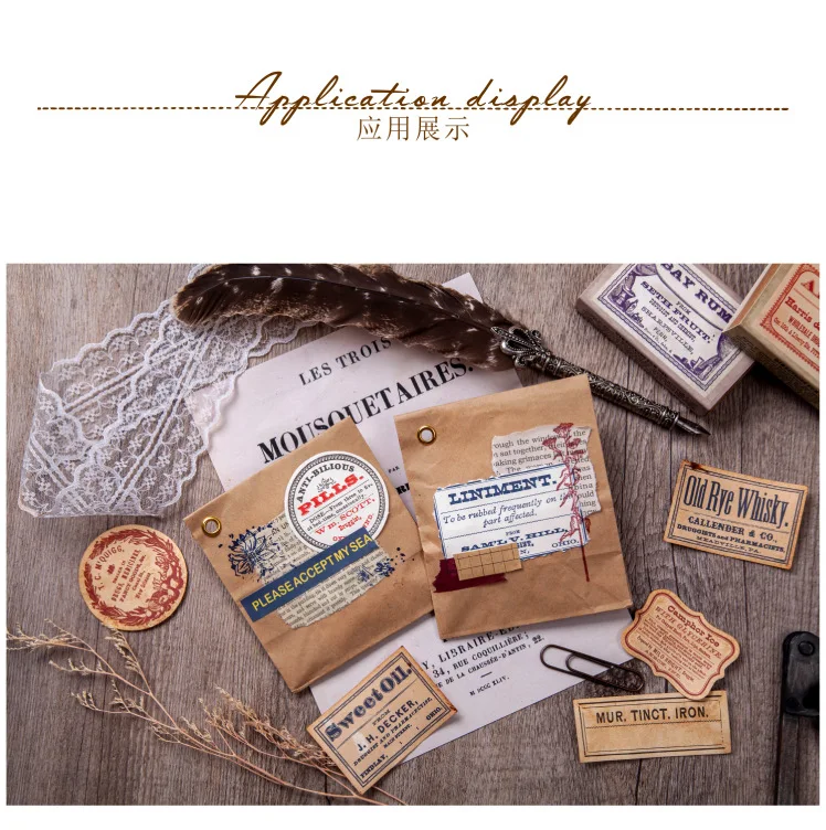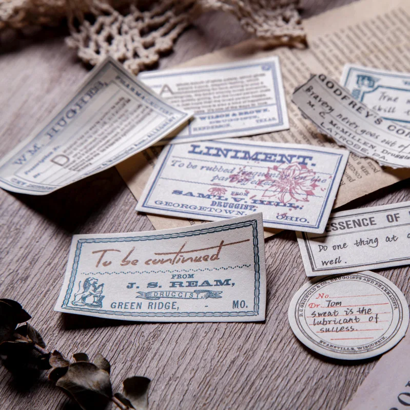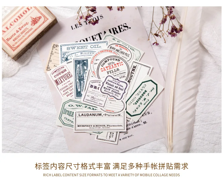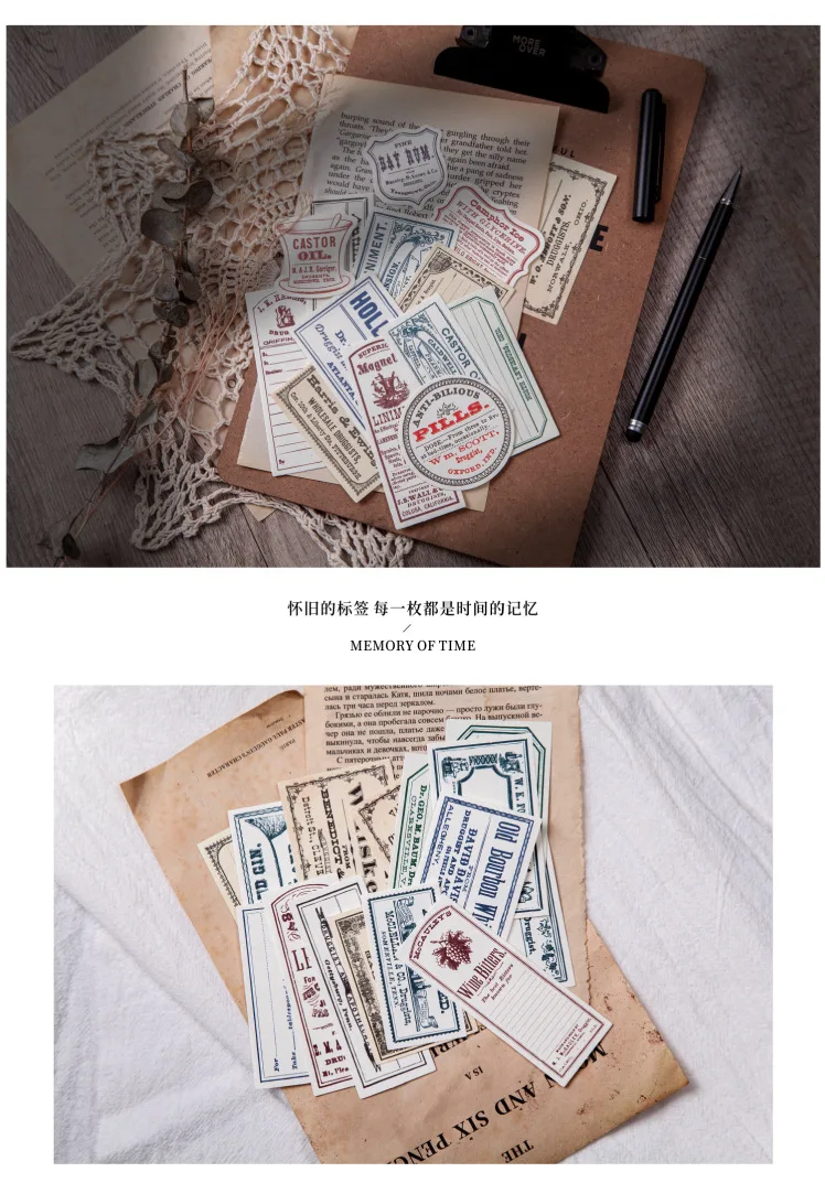 60 шт. винтажные старые этикетки из материала для учебы, декоративные канцелярские принадлежности, скрапбукинг, дневник, альбом, ретро, блокнот, журнал, планировщик