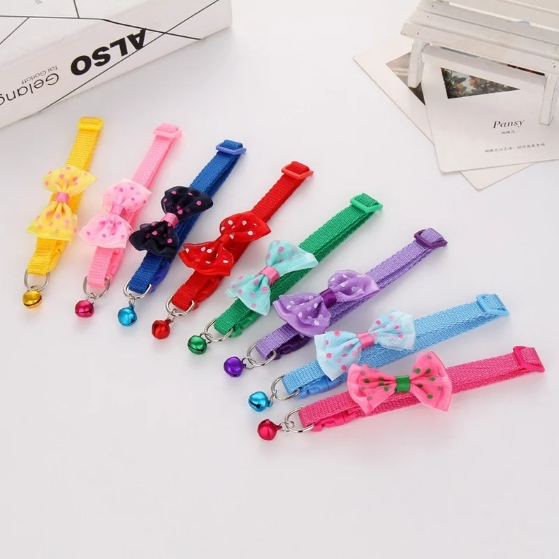 Ошейник с бантом для кошек и собак, Регулируемый аксессуар для дома...