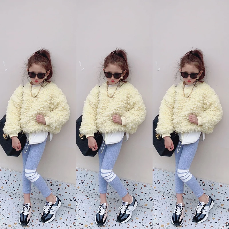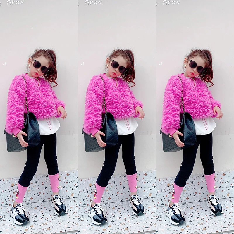 Название:Весенне-осенняя трикотажная рубашка для девочек пуловер для малышей Детская уличная одежда модная Вельветовая одежда с поясом из искусственной шерсти для детей от 3 до 13 лет