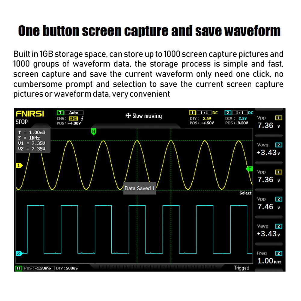 Описание:Встроенный генератор сигналов DDS, поддержка 12 видов функционального сигнала.Оригинальная функция захвата выходного сигнала позволяет хранить до 1000 сигналов захвата.Целевой Высокоинтеллектуальный алгоритм декодирования, срок службы кодировщика бесконечен.Интеллектуальная защита от ожогов, 1X Выдерживает напряжение до 400 В.100 МГц аналоговая полоса пропускания @ 1GSa/s частота дискретизации (1X = 5 МГц, 10X = 100 МГц).Характеристики:ТоварНазвание: ОсциллографЦвет: белыйВилка: ЕС/СШААналоговая полоса пропускания: 100 МГц x 2Количество каналов: 2 каналаМаксимальная частота дискретизации в реальном времени: 1GSa/sВертикальная чувствительность: 50 мВ/див ~ 500 В/ДивГоризонтальный диапазон времени: 50S/div ~ 10NS/divМаксимальное тестовое напряжение: 40 В (1X зонд), 400 В (10X зонд)Глубина хранения: 240 кбитВходное сопротивление: 1 МОмТочность ADC: 8 битРежим соединения: AC/DCРежим запуска: одиночный, нормальный, автоматическийКромка триггера: поднимающаяся кромка/опускающаяся кромкаВнешнее триггерное напряжение 0-40 вДисплей: 7 дюймов-800*480Удлинительные порты: экспорт изображений USBРазмер: 340 мм x 140 мм x 70 ммВес: 1,5 кгДругие: планшетный осциллограф, набор осциллографов, мультиметр осциллографа, пробник осциллографа, лабораторные осциллографыПримечание:-Возможны небольшие погрешности в размере при ручном измерении.-Отклонение цвета может отличаться из-за различных настроек монитора, пожалуйста, поймите.Упаковочный лист