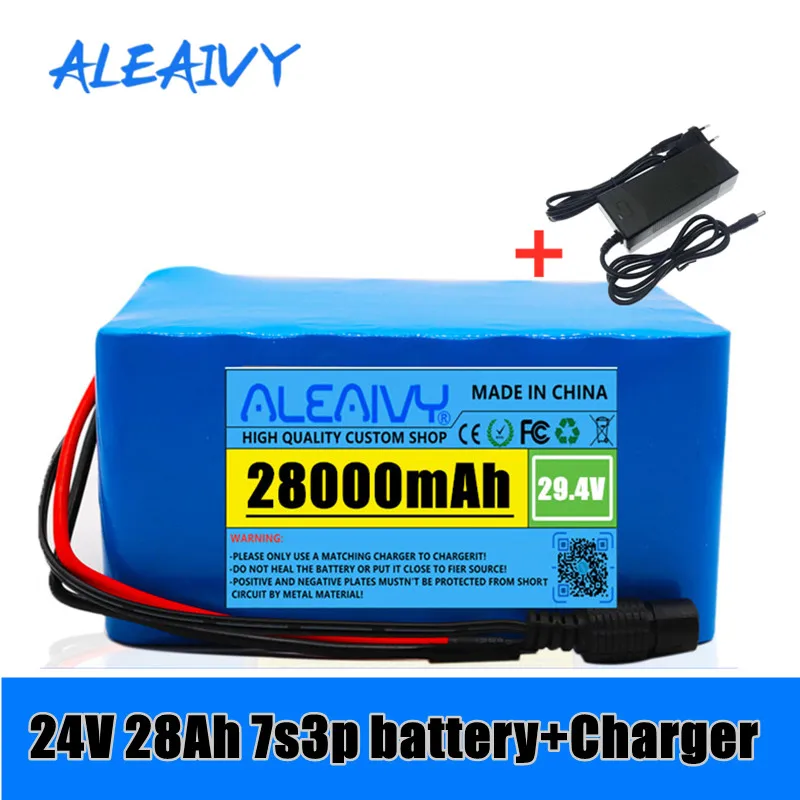 Аккумулятор 18650, 24 В, 28 А ч, 7s3p, литиевый аккумулятор 24 В, 28000 мА ч, аккумулятор комплект литий-ионный батарей для электрического велосипеда, мопеда + зарядное устройство 2 А