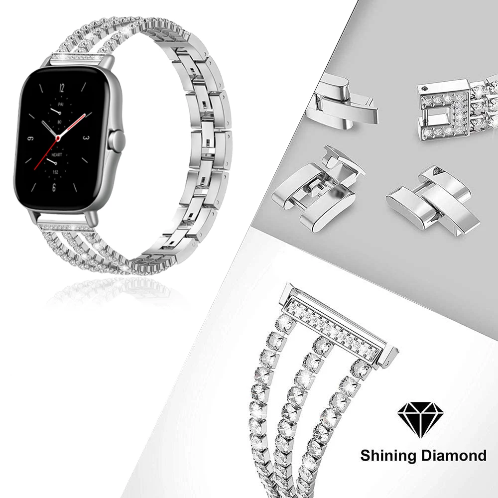 20 мм 22 мм Женский браслет из нержавеющей стали с бриллиантами для Huami Amazfit GTS 2/2e GTS мини металлический ремешок для браслета Amazfit Bip