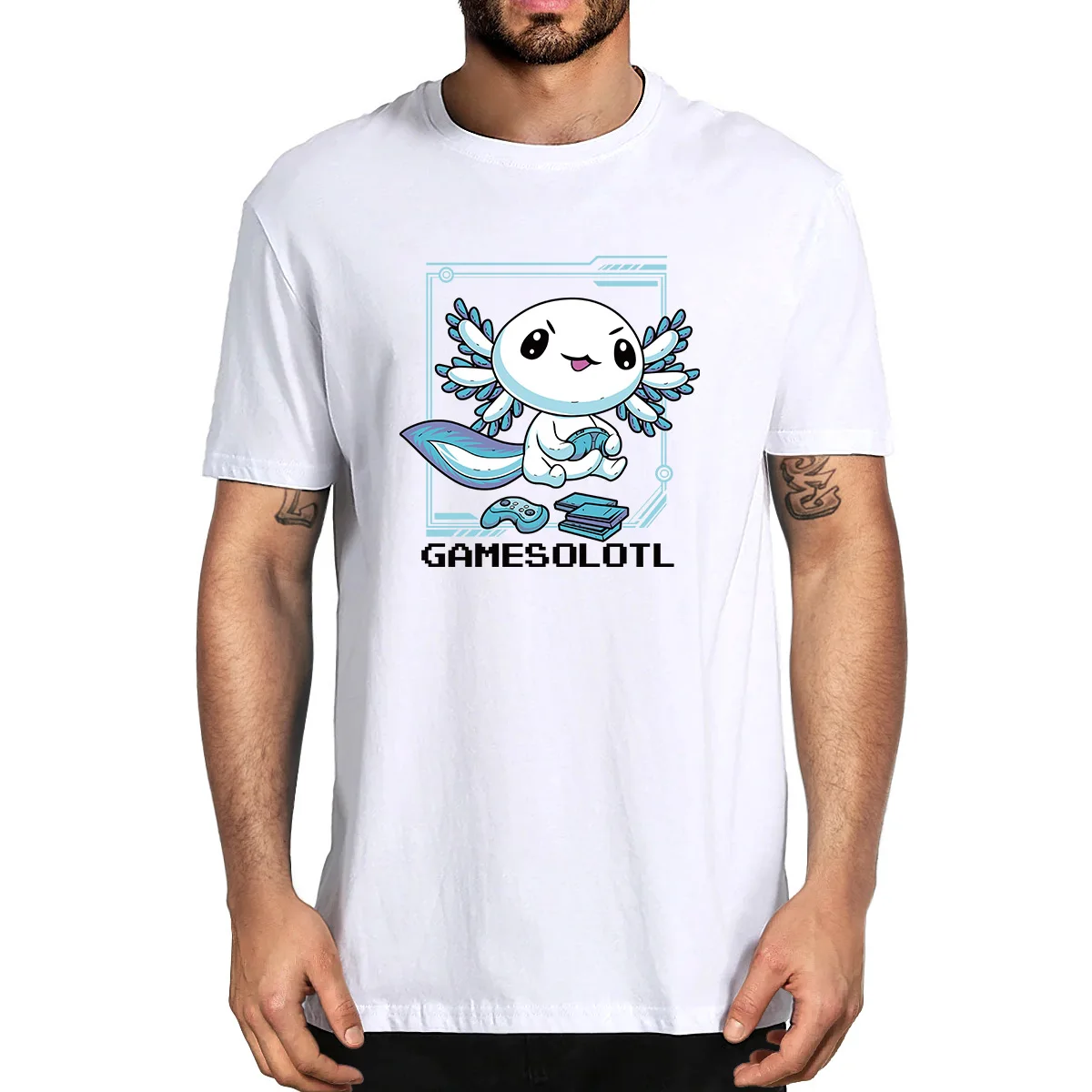 Футболка Gamesolotl для геймеров, аксолотл, для игр в видеоиграх, ящерица, 100% хлопок, летняя мужская новинка, футболка оверсайз, Женская Повседневная
