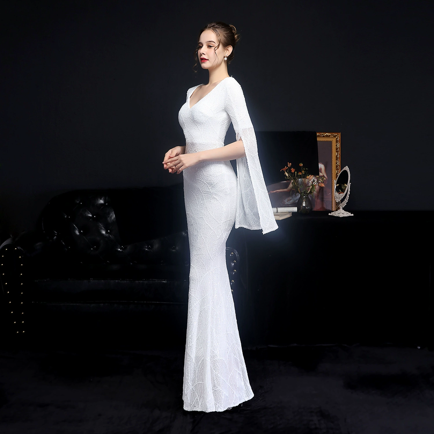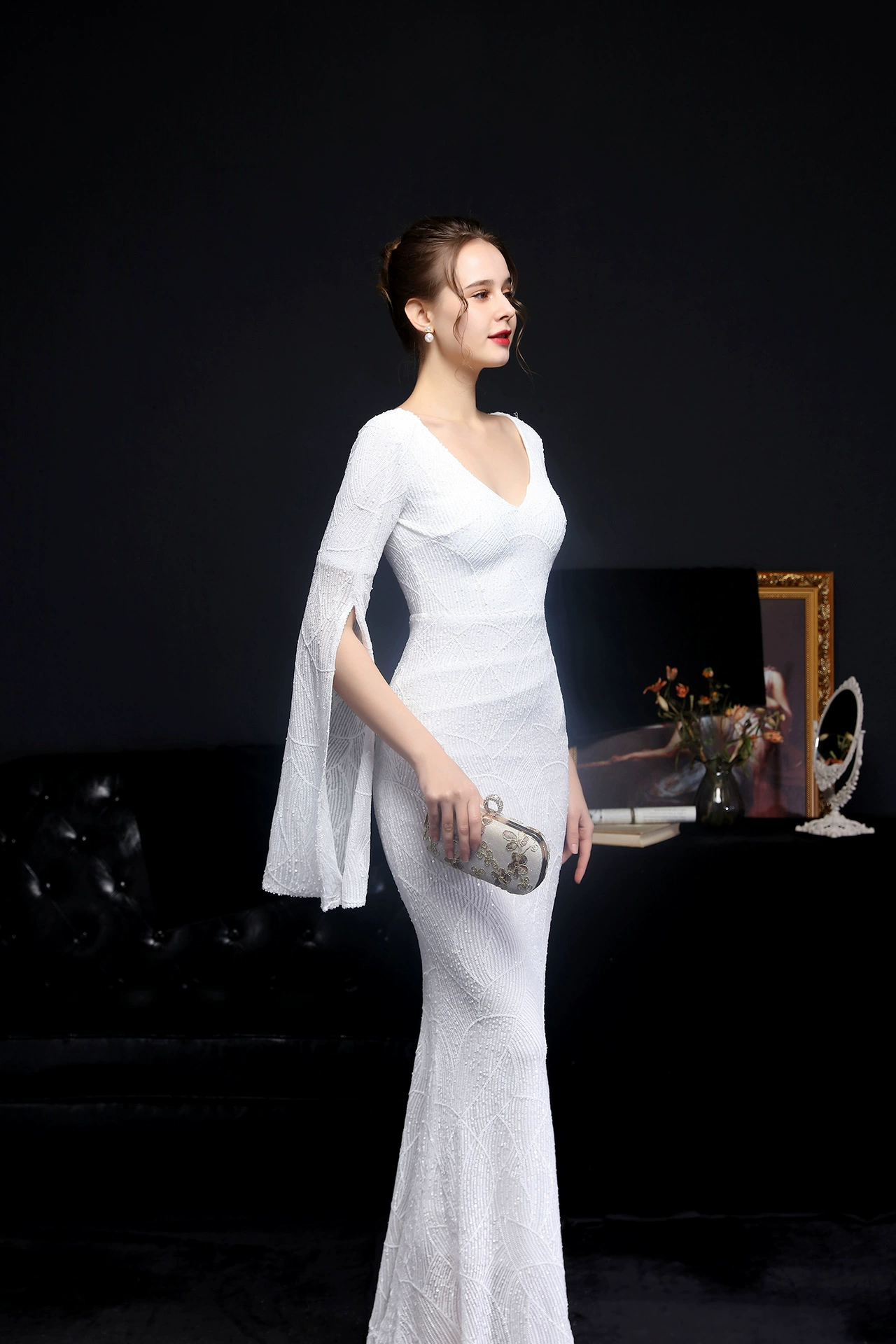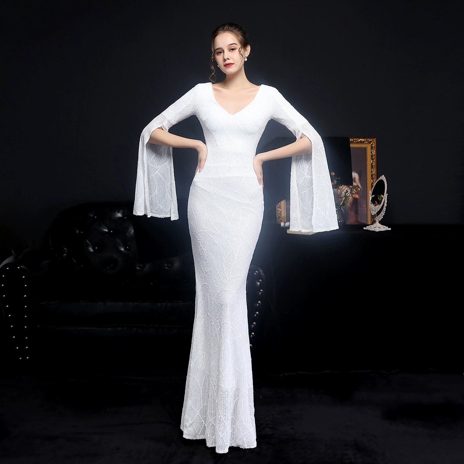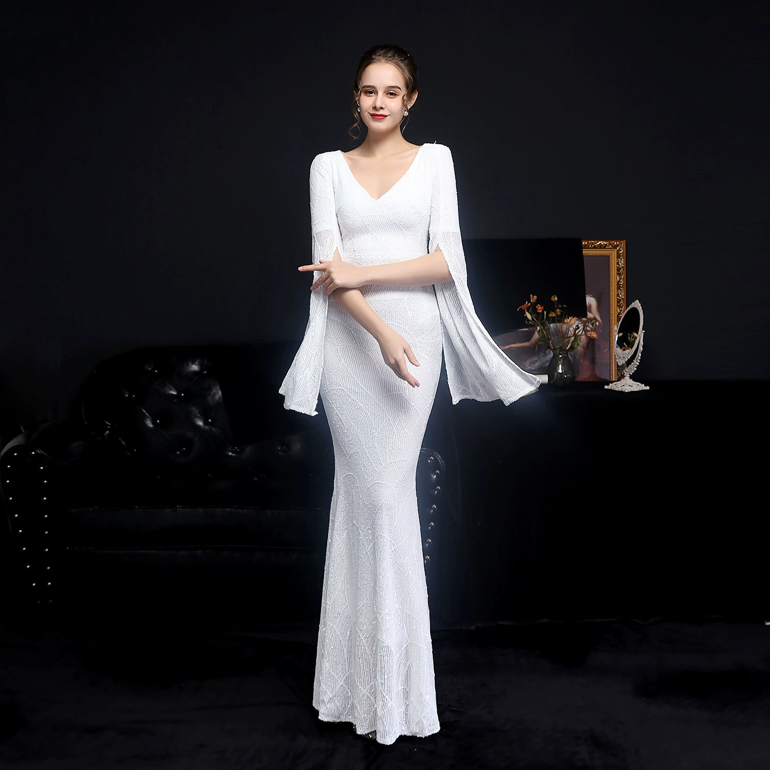 2022 белое Элегантное Вечернее Платье макси с золотыми блестками ве...