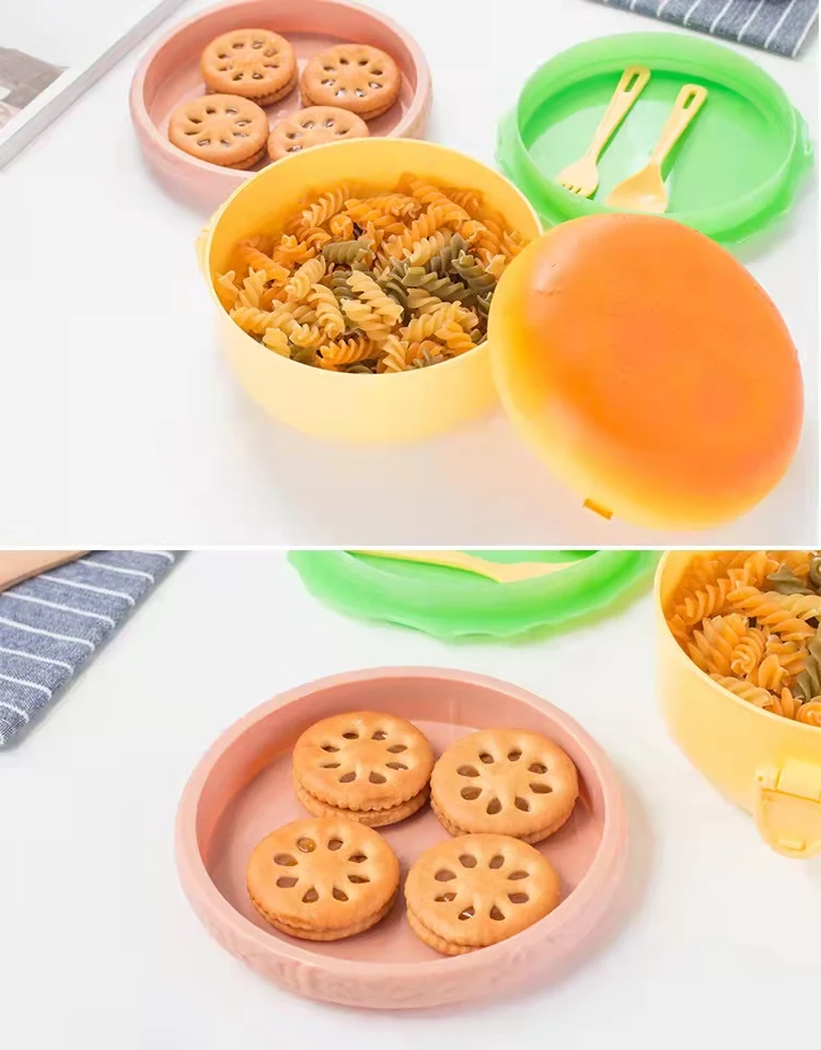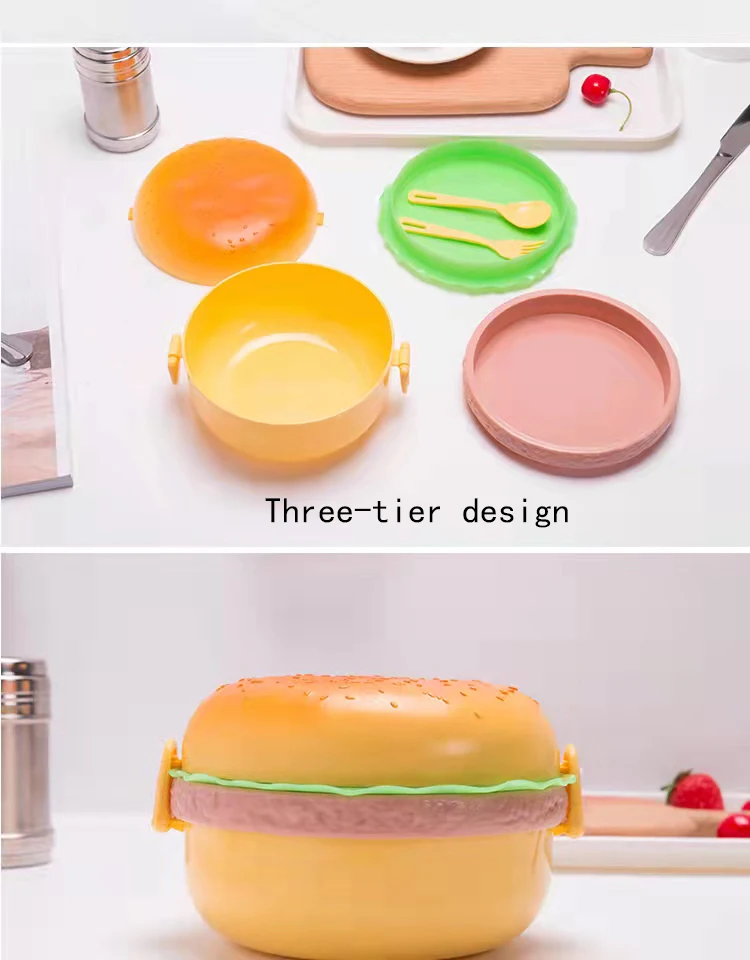 Мини ланч-бокс с бургерами трехуровневый милый ланч-бокс с бургерами детский ланч-бокс школьный пищевой контейнер вилка набор столовых приборов ланч бокс