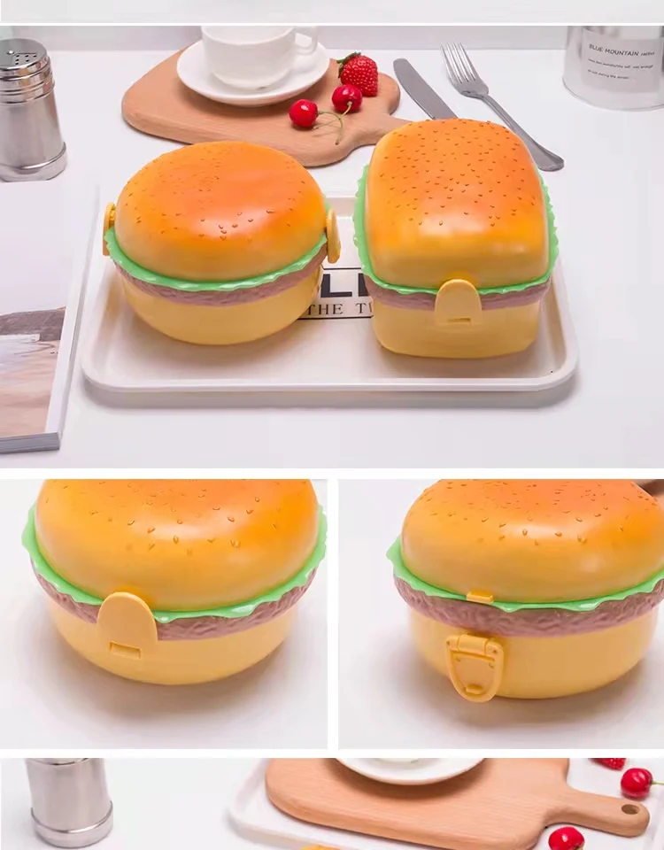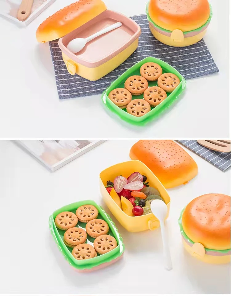 Ланч-бокс для гамбургеров, двухуровневый милый Контейнер для гамбур...