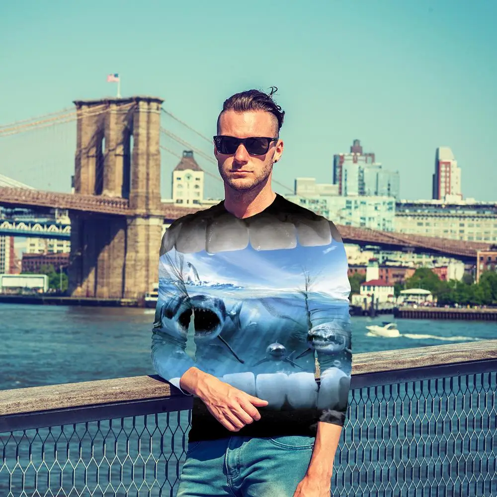 Мужская футболка KYKU, летняя футболка с 3D-принтом акулы, эконом, океана, хип-хоп