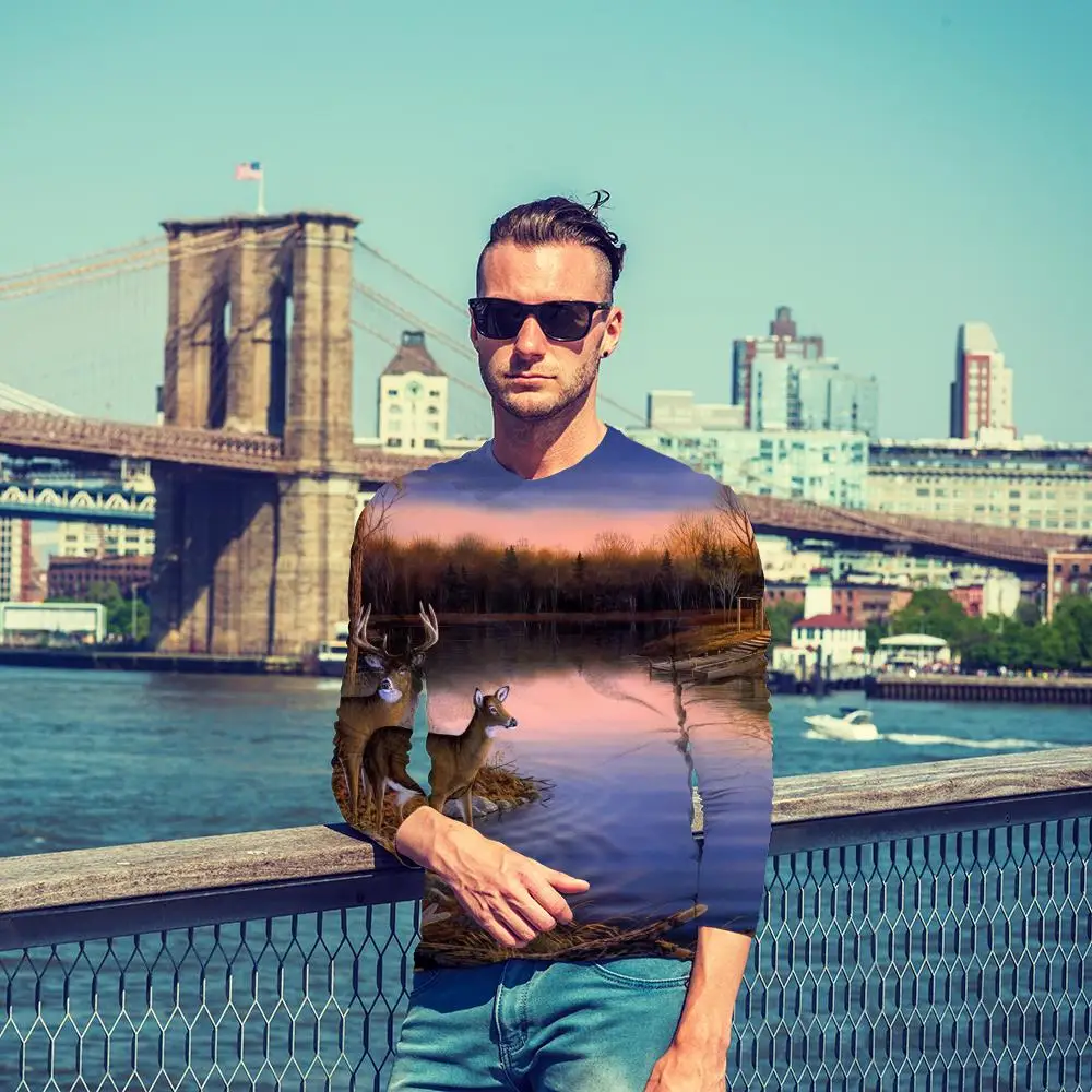 Футболка мужская с длинным рукавом KYKU, летняя футболка с 3D-принтом